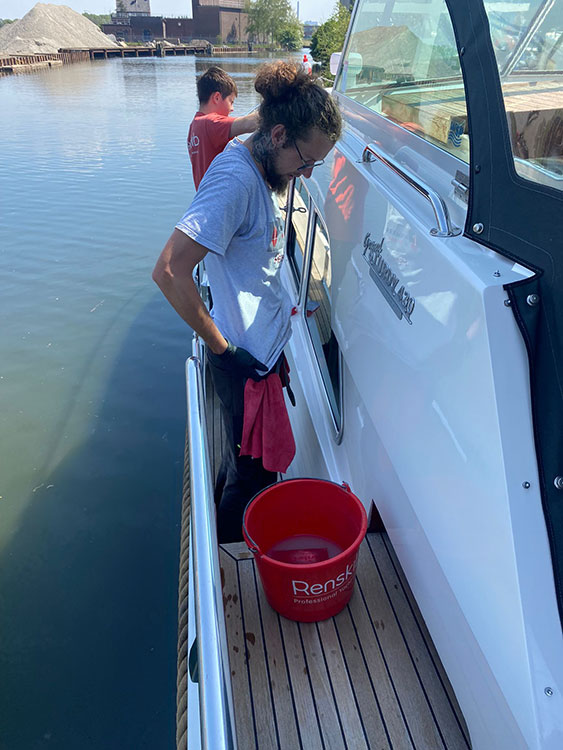 Wij helpen je graag bij het periodiek wassen van je boot. Van de opbouw en romp en ook van je teak. Of we helpen je die keer dat de boot het echt grondig nodig heeft, bijvoorbeeld na de winterstalling. Voor het beste resultaat en de optimale bescherming gebruiken wij voor het wassen Renskib Shampoo. De nummer 1 boot Shampoo uit Denemarken. Een 100% duurzaam product, want als watersporter wil je toch zeker niet dat je boot wordt gewassen met een product dat schade toebrengt aan het oppervlaktewater en de dieren die erin leven.