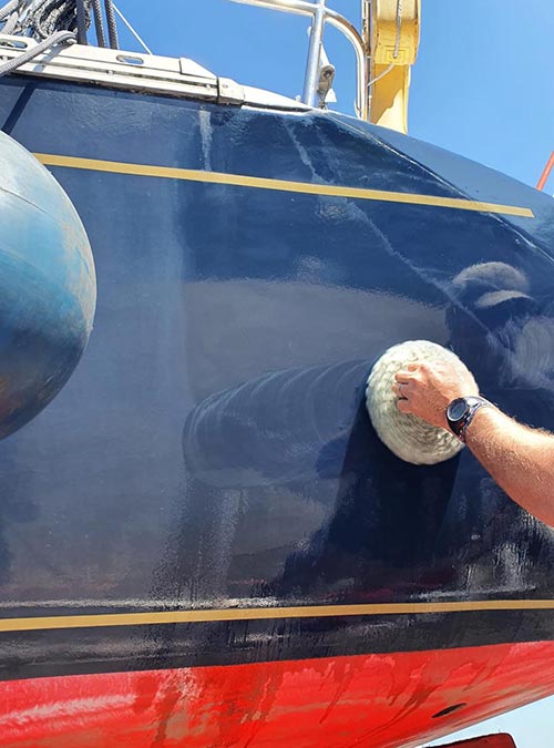 Wanneer na het wassen al het vuil, de oude onderhoudsproducten en kalk zijn verwijderd en het blijkt dat je boot in meer of mindere mate mat is en blijft, dan is polijsten (poetsen in de volksmond) de oplossing. Hiermee wordt de glans van de boot teruggebracht. Bij Massenberg Yacht Care raden wij polijsten met de Renskib polijstpasta’s aan. Deze zijn 100% duurzaam en vrij van chemische verbindingen, fillers, vetten en PTFE’s … er wordt niets verbloemd of opgevuld. Het oppervlak van de gelcoat of lak laten we zelf weer glanzen en de staat van je boot wordt daarmee structureel verbeterd.