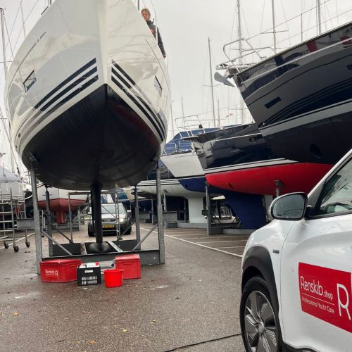Als een boot nog (vrij) nieuw is, zoals deze mooie X bij Regatta Center Medemblik, en niet verweerd dan is het voldoende om haar te laten wassen met Renskib Shampoo en vervolgens in de Renskib Sealer te zetten. Dan blijft ze mooi en kan het polijsten een aantal jaren worden uitgesteld. Zeker bij een witte romp. Voorkomen is beter dan genezen. Als je boot wel al verweerd is kunnen wij haar natuurlijk voor je terugbrengen naar de glanzende staat.
